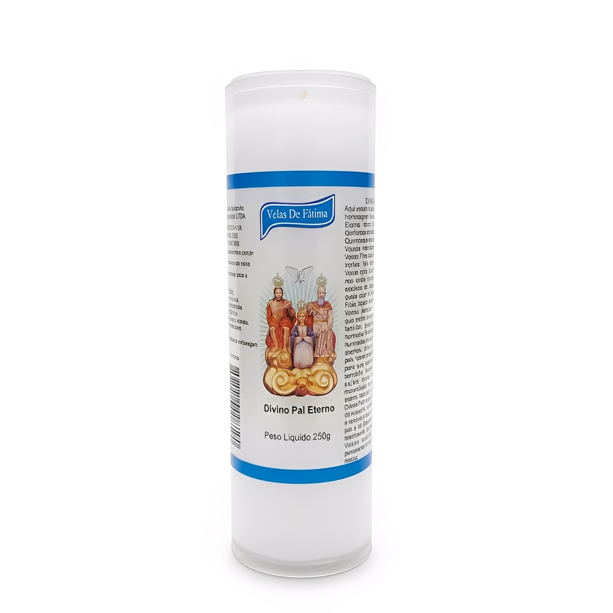 - 12 velas votivas de 7 dias com imagem Divino Pai Eterno embalada em tubo pvc anti chama com tampa.